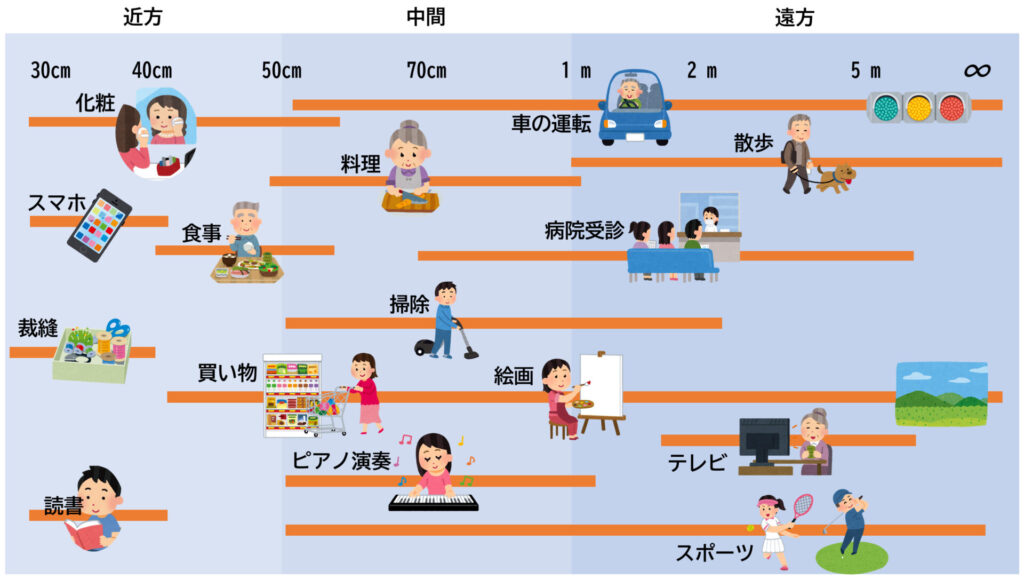 約40cm・約80cm・∞ 近方・中間・遠方 |