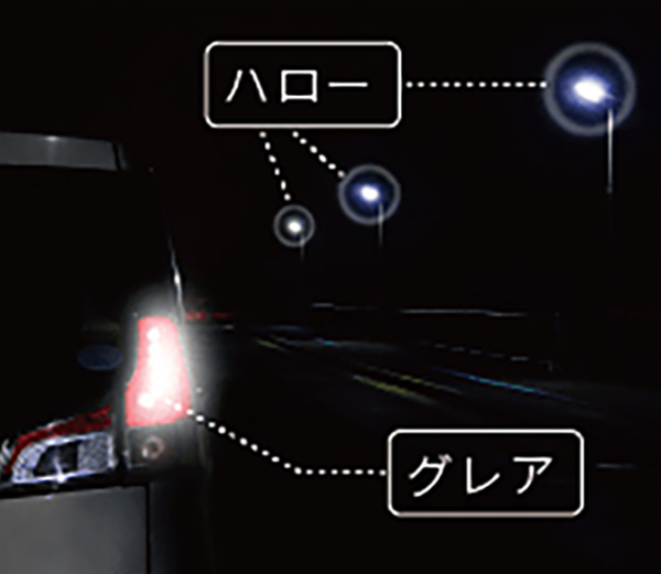 暗いところでライトの光が広がったりまぶしく見えたりします。