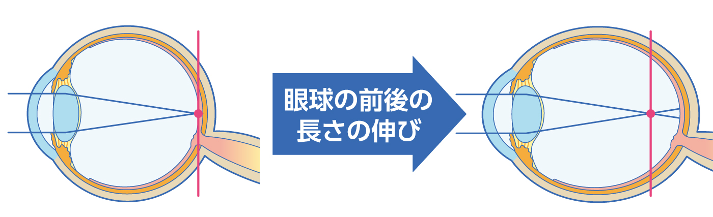 近視のほとんどは眼球が前後に伸びることで起こります。