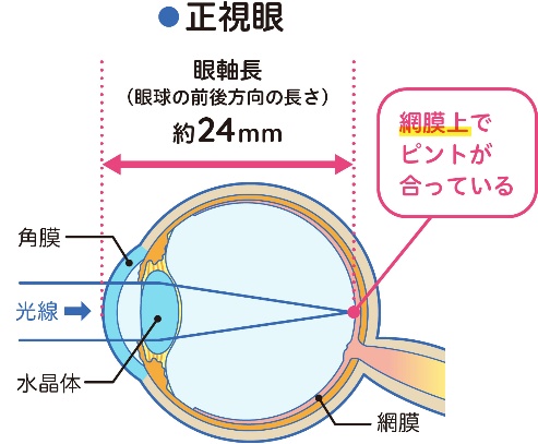 目の中に入った光のピントが合う位置が網膜によって前になっている状態のことをいいます。